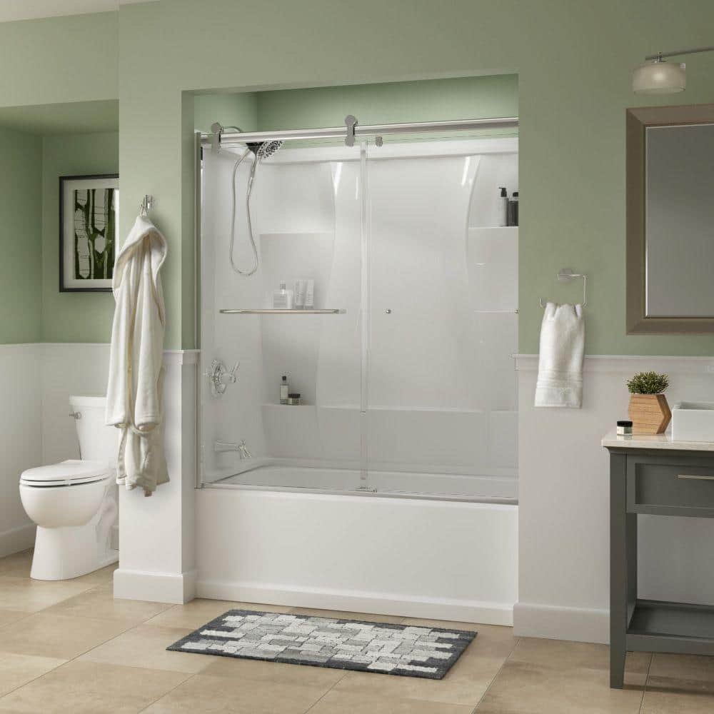 Simplicity Contemporary 50-1/8 to 58-1/2 in. W in. x 58-3/4 in. H Frameless Sliding Tub Door, Chrome, Clear Glass