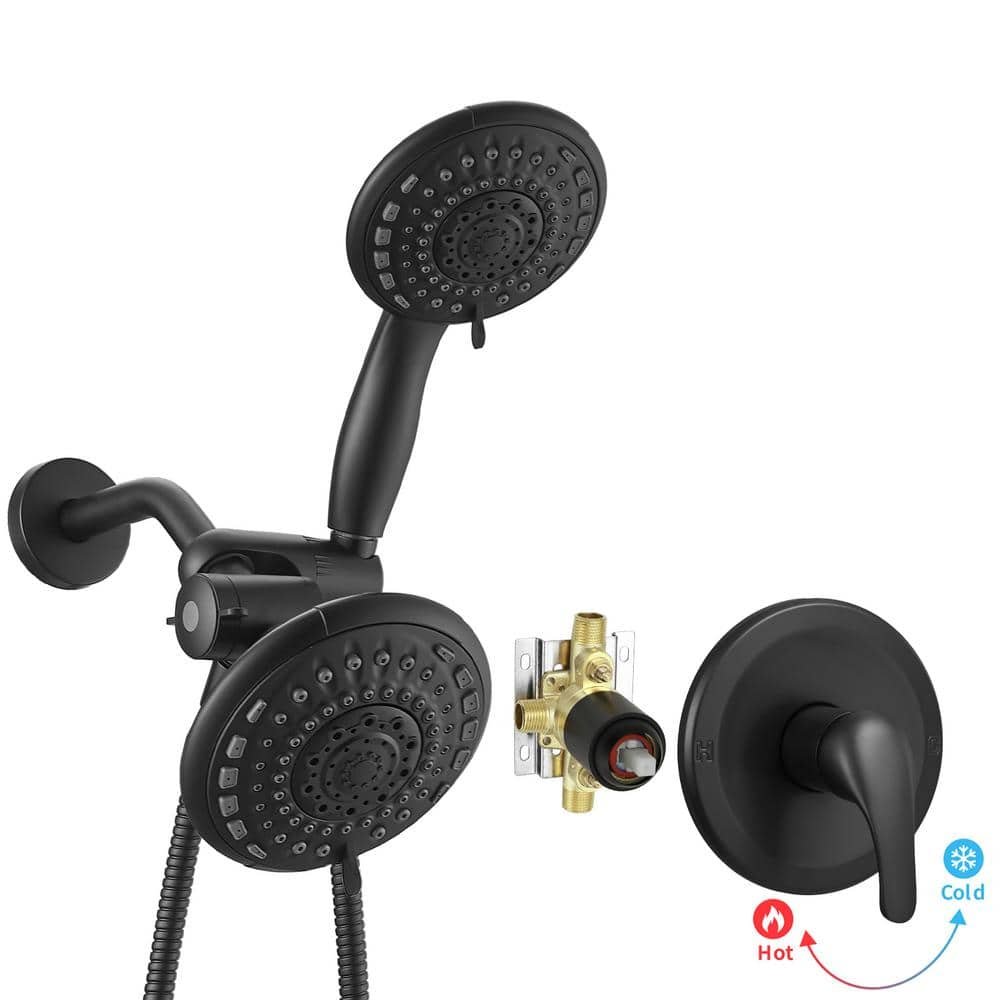 Single-Handle 6-Spray Dual Shower Faucet Set Trim Kit 1.8 GPM with Valve and Filtered Handheld Shower Head in. Black