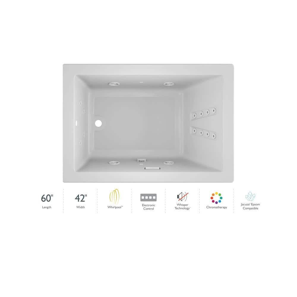 Solna 60 in. x 42 in. Rectangular Whirlpool Bathtub with Left Drain in White