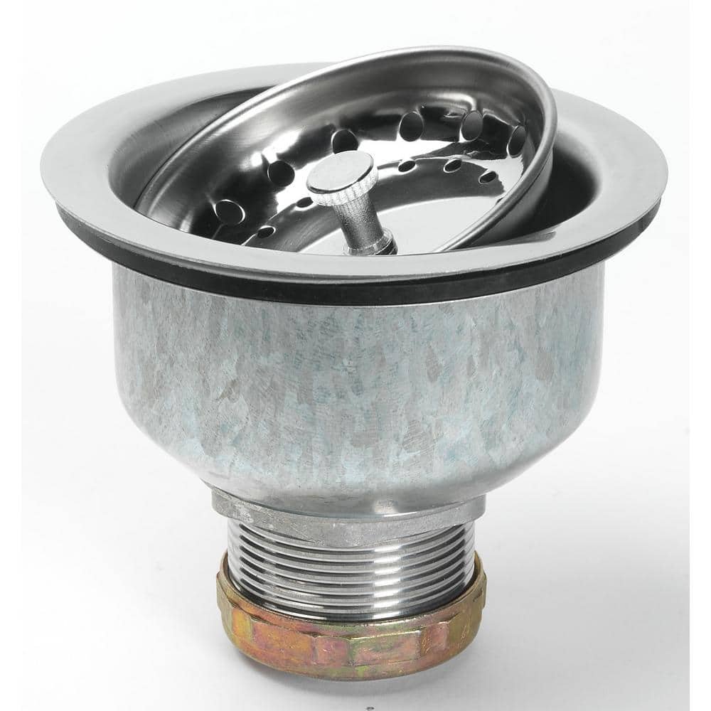 The Glacier Bay heavy duty ball-lock kitchen sink strainer is rich with features. The durable and long-lasting strainer body has a deep cup/long shank design for use with thicker granite or composite sinks. This strainer features a double cup for easy installation. The included removable basket features a ball lock post for the ultimate in solid fit and performance. Stainless steel construction provides strong corrosion resistance and lasting performance.
