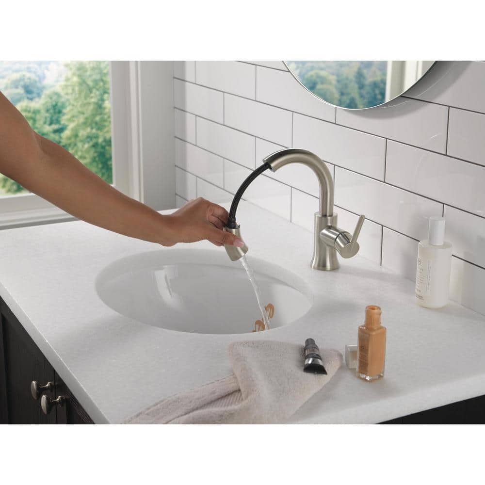 Trinsic Single Handle High Arc Single Hole Bathroom Faucet with Pull-Down Spout in Stainless