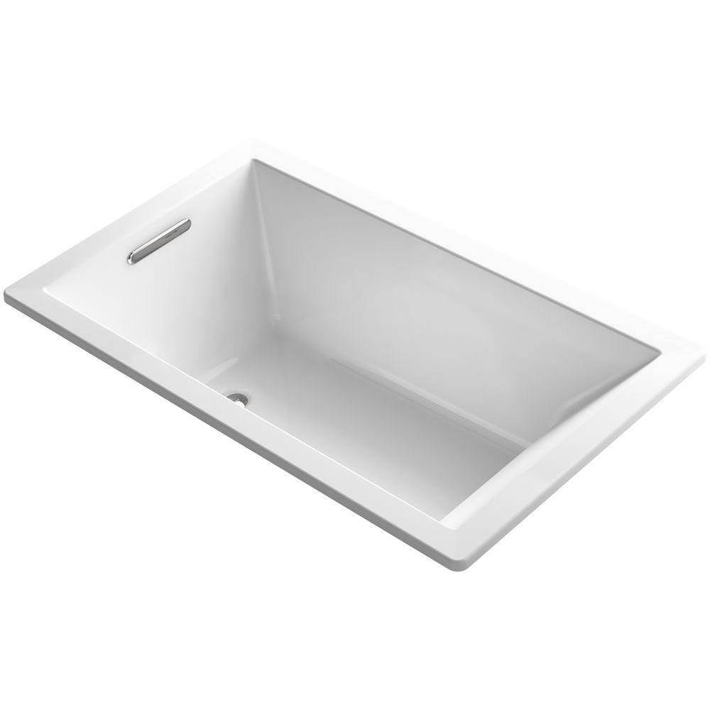 Streamlined for simplicity, this 60″ x 36″ drop-in Underscore bath by KOHLER exudes refined style with contemporary flair. The KOHLER Underscore drop-in bath has a slotted overflow drain that allows for a luxuriously deep soak as you relax against the comfortable integral lumbar support, sloped backrest.