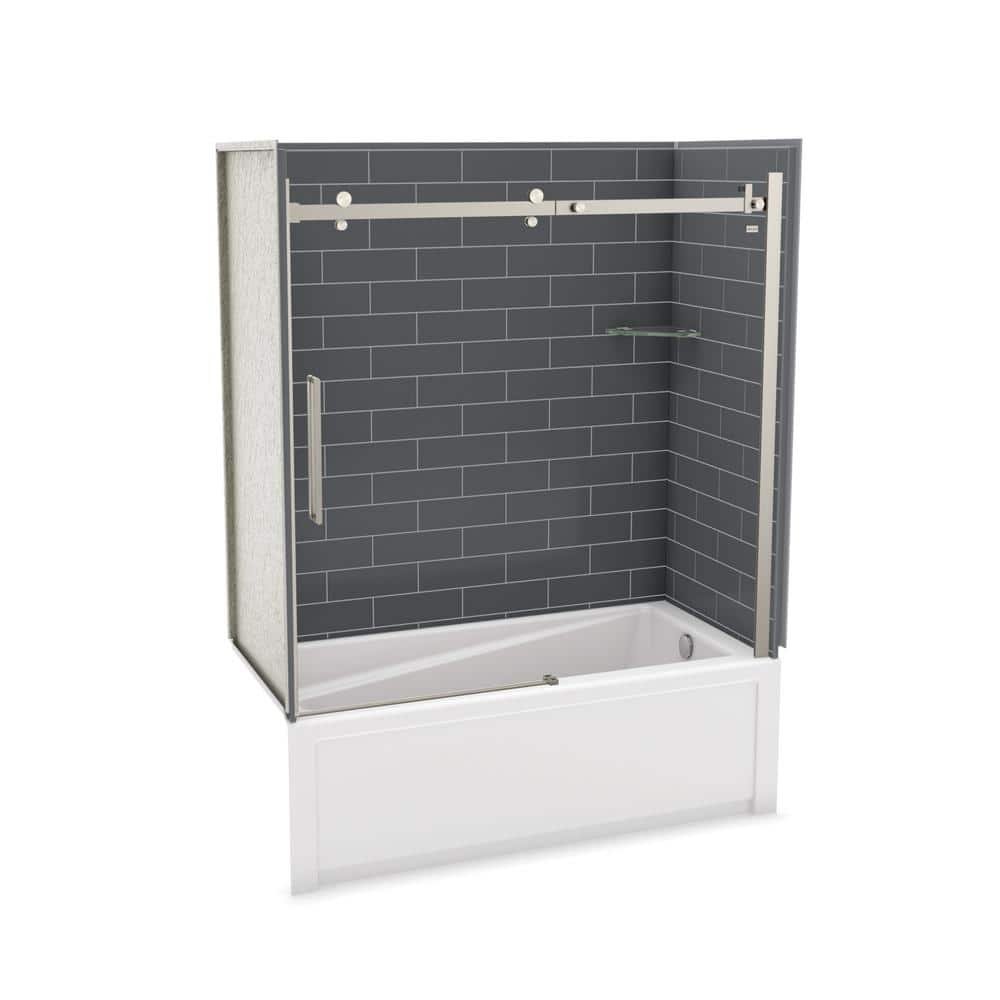 Utile Metro 32 in. x 60 in x 81 in Bath and Shower Combo in Thunder Grey, New Town Right Drain, Halo Door Brushed Nickel