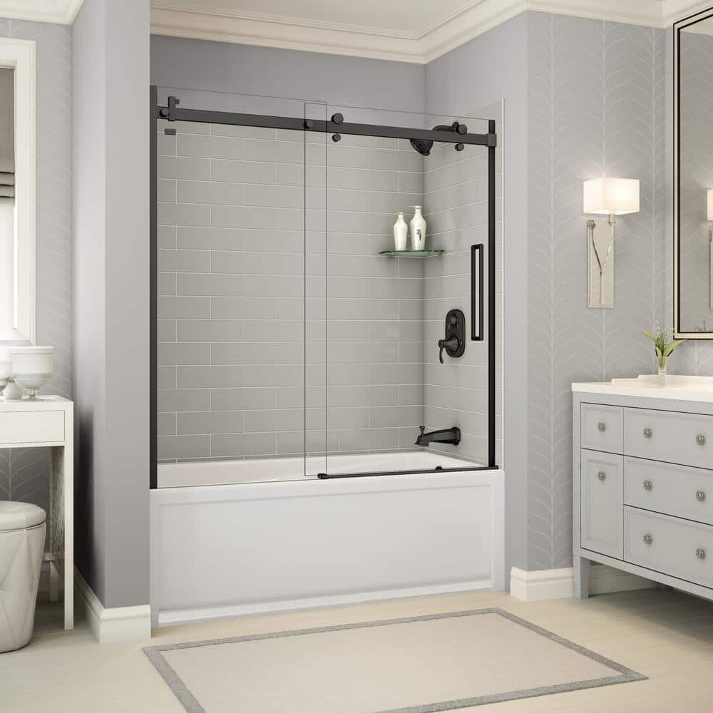 Utile Metro 32 in. x 60 in. x 81 in. Bath and Shower Kit with New Town Right Hand Drain in Soft Grey