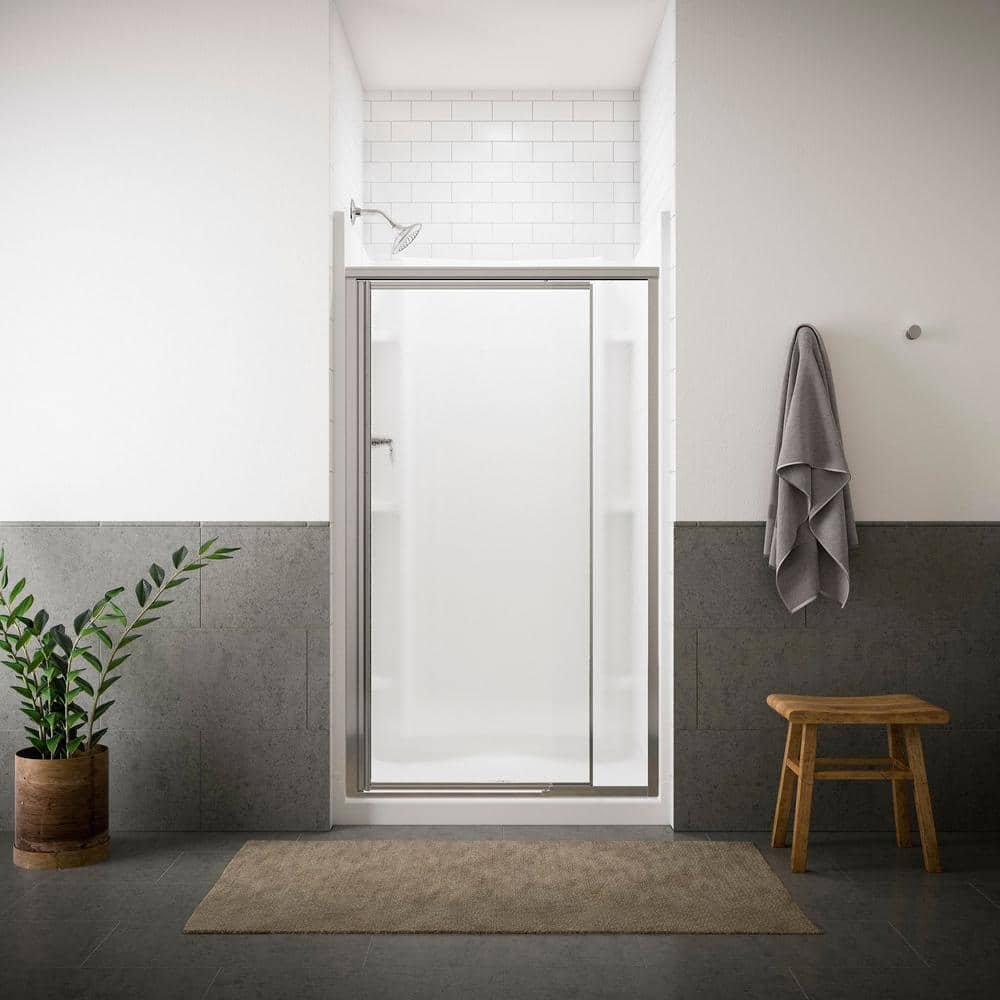 Vista Pivot II 42 in. x 65-1/2 in. Framed Pivot Shower Door in Silver with Handle