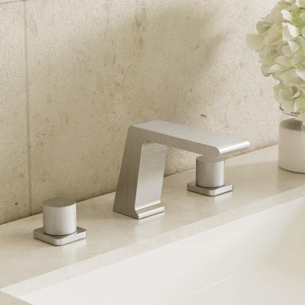 Waterfall Sink Faucet 8 in. Widespread Double Handle Bathroom Faucet in Brushed Nickel Drain Not Included