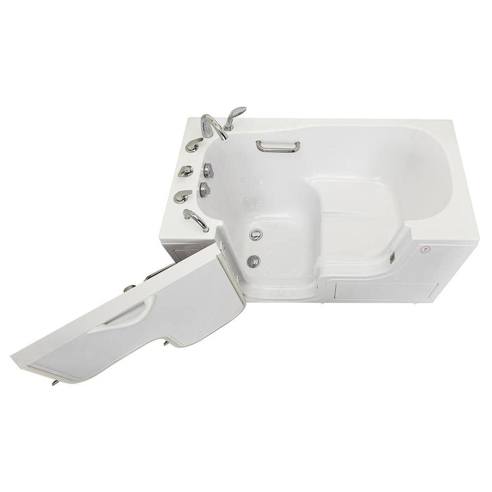Wheelchair Transfer 60 in. Acrylic Walk in Soaking Tub in White with Faucet Set, Heated Seat and Left 2 in. Dual Drain