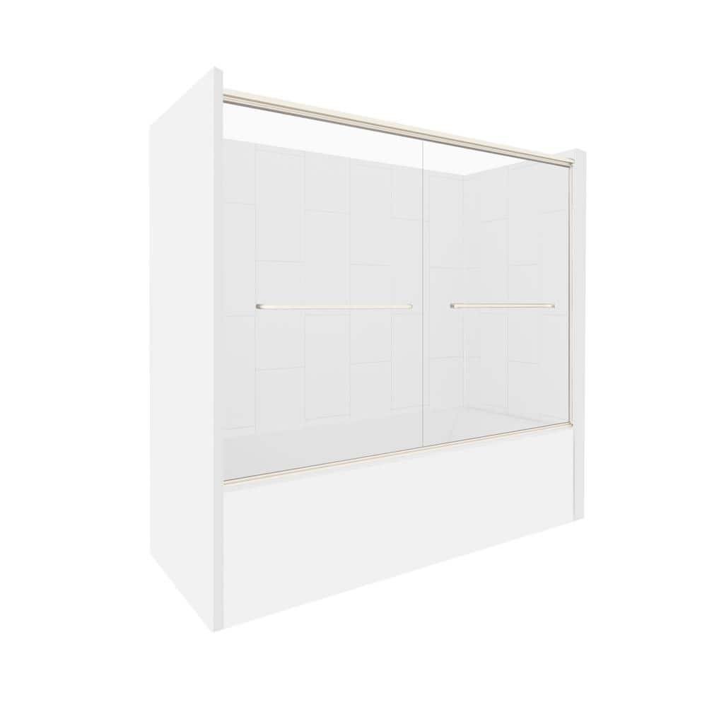 Winter White-Rainier 60 in. L x 30 in. W x 83 in. H Rectangular Tub/ Shower Combo Unit in Brushed Nickel Right Drain